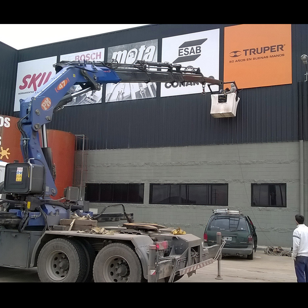 37- Fondo de chapa trapezoidal pintada, letras corpóreas en polyfan pintado con contra letra de chapa.