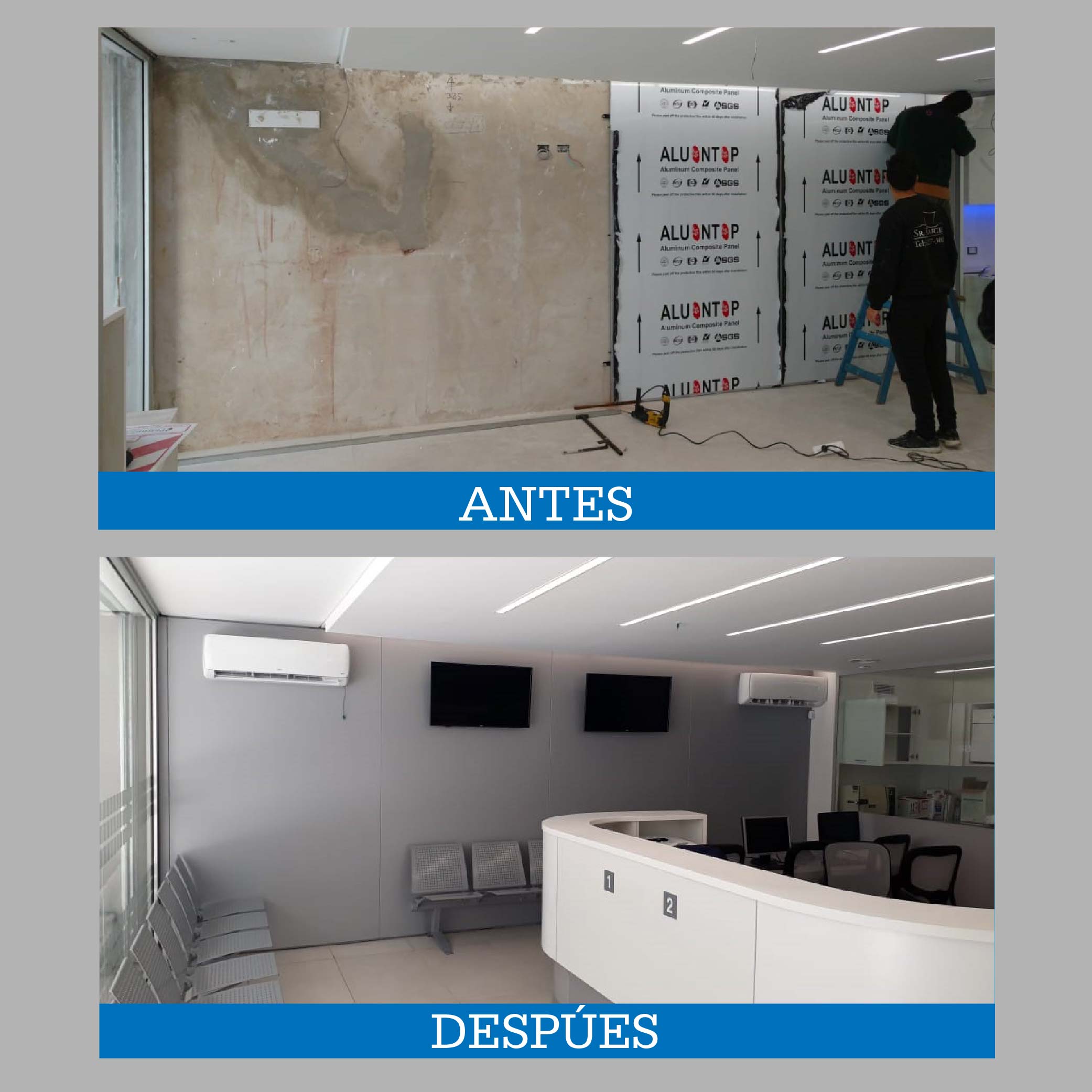 Revestimiento de paredes con aluminio compuesto en angulo.