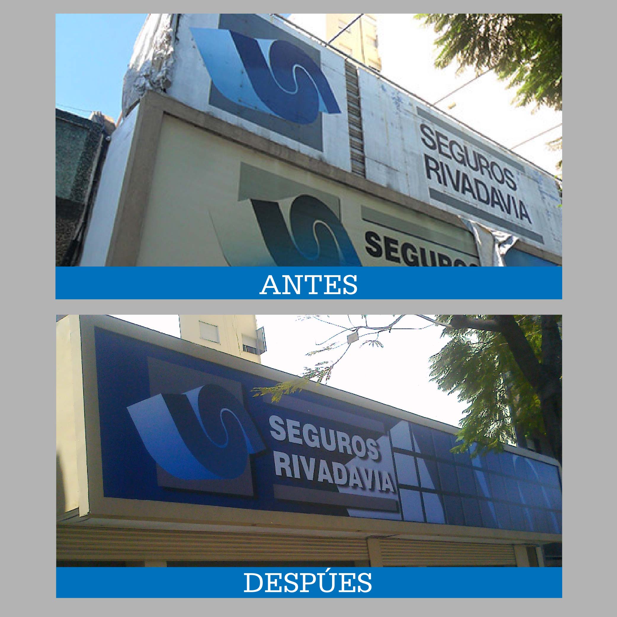S.Clara- Corpóreo back light chapa + lona impresa y letras de pvc frente símil acero.