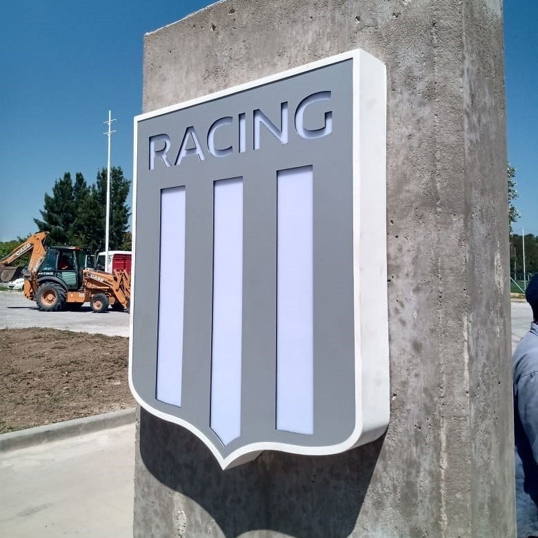Racing- cartel back de aluminio compuesto calado e insertos de acrílico iluminado con led.