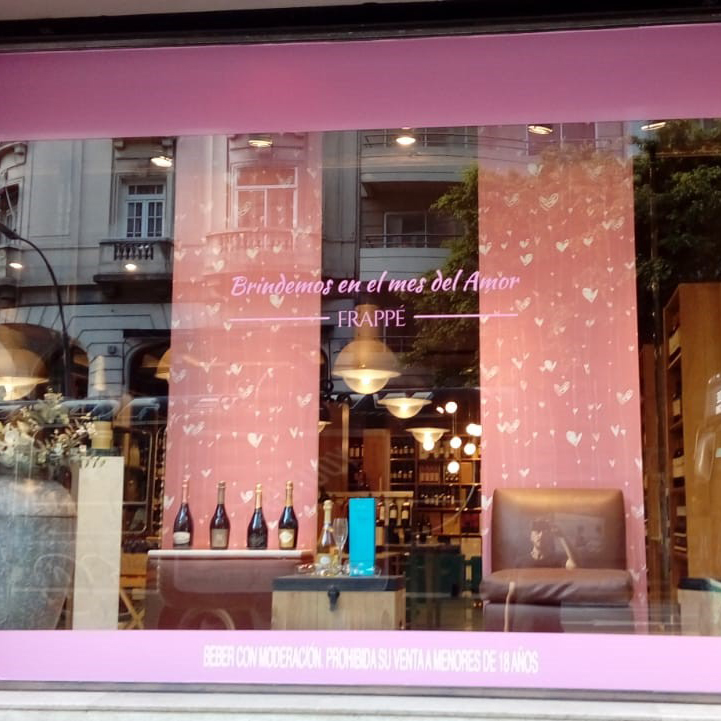 Vinilo esmerilado impreso y de corte sobre vidrio.